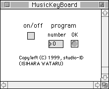 MusicKeyboardウィンドーにはon/off欄があります。この欄は、打つたびに□/×が切り替わります。