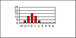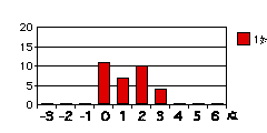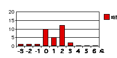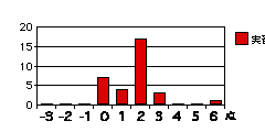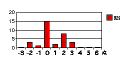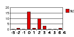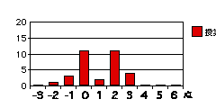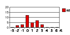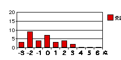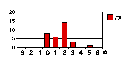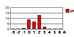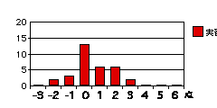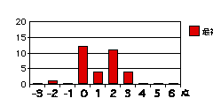 各設問のグラフは、それぞれの得点を記入した回答の度数を示す。もしそれぞれの属性について可不可がなければ、グラフは下図のように0に峰を持つ曲線をなすはずである(図は概念図で高さや広がりには意味はない)。